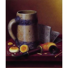A Still Life With A White Porcelain Pitcher Fruit And Veget