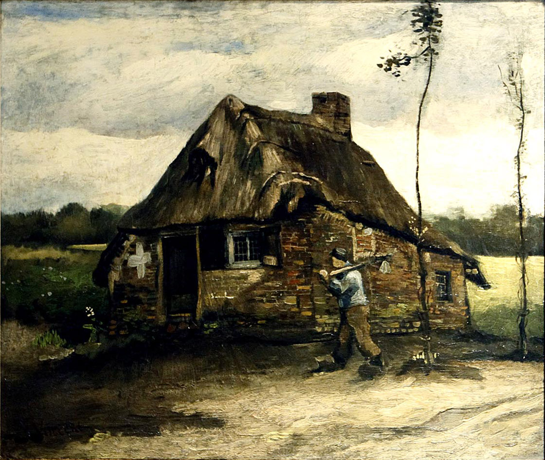 China Oil Painting Gallery supply Cottage with peasant coming home of Vincent van Gogh by customer sizes. 100% hand painted museum quality painting reproduction on canvas for sale . We can paint by any size. If you need a customer size that out of above list, please contact with us.