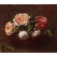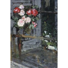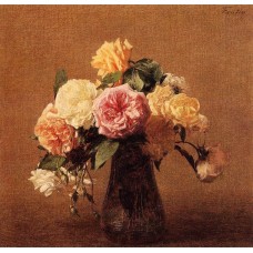 Roses and Heliotrope in a Vase on a Marble Tabletop
