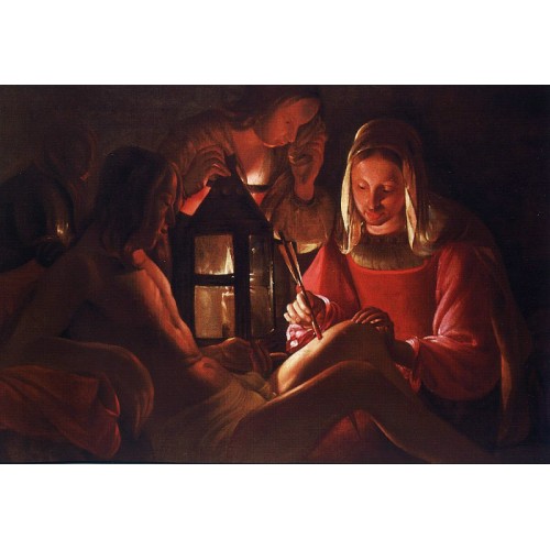 China Oil Painting Gallery supply St Irene Removing Arrows from St Sebastians' Leg of Georges de La Tour by customer sizes. 100% hand painted museum quality painting reproduction on canvas for sale . We can paint by any size. If you need a customer size that out of above list, please contact with us.