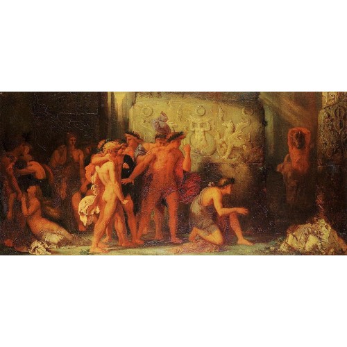 China Oil Painting Gallery supply Athenians being Delivered to the Minotaur in the Cretan Laby of Gustave Moreau by customer sizes. 100% hand painted museum quality painting reproduction on canvas for sale . We can paint by any size. If you need a customer size that out of above list, please contact with us.