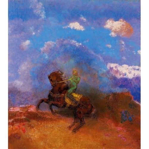 China Oil Painting Gallery supply The Green Horseman of Odilon Redon by customer sizes. 100% hand painted museum quality painting reproduction on canvas for sale . We can paint by any size. If you need a customer size that out of above list, please contact with us.