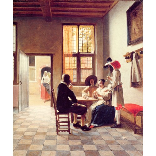 China Oil Painting Gallery supply Card Players in a Sunlit Room of Pieter de Hooch by customer sizes. 100% hand painted museum quality painting reproduction on canvas for sale . We can paint by any size. If you need a customer size that out of above list, please contact with us.